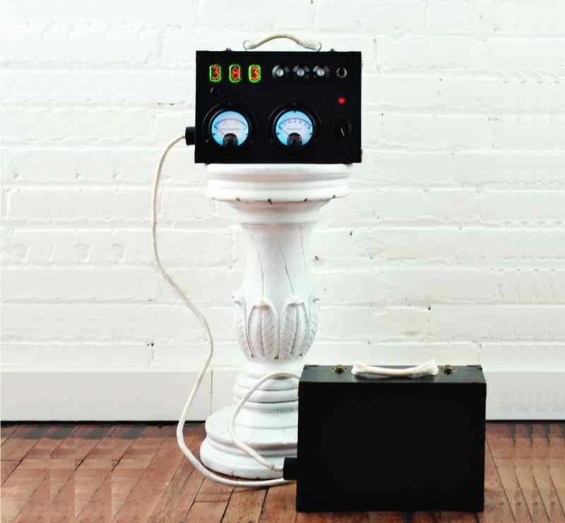 設計:兩個配套的藝術手提箱透過電纜連接,將機器的兩個部件包裹其中。慕尼黑在箱蓋上開了孔,用於安裝電源開關、電流和電壓監測表、曝光時間設定旋鈕,以及來自烏克蘭供應商的輝光管顯示器,該顯示器能將曝光時間精確到十分之一秒。