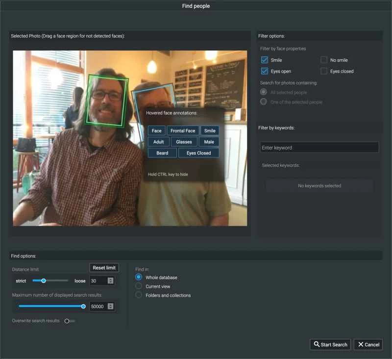 使用關鍵字和其他元資料的另一面是,事情很容易變得複雜。大多數應用程式都力求簡化搜尋操作以吸引更多用戶,但Excire Foto支援多種照片搜尋方式。
