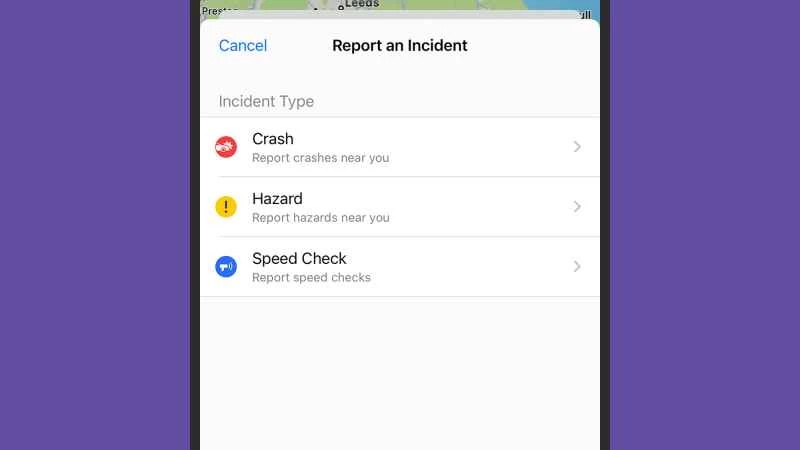 所有這些操作都可以透過 Siri 完成,如果您需要專心駕駛,Siri 也是更安全的選擇。措辭並不重要,只要您能清晰地表達意思即可——例如,「嘿 Siri,報告事故」或「嘿 Siri,路上有東西」都是可以接受的。如果您使用 Siri,報告會立即生效。