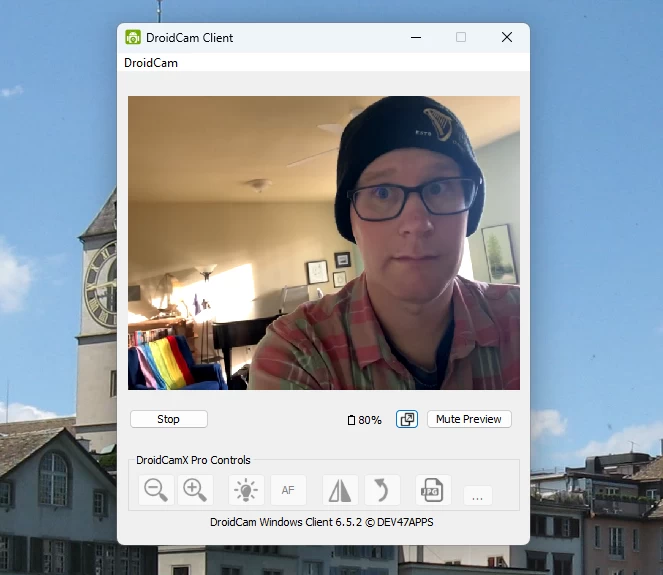 Windows 用戶目前沒有官方的 Continuity Camera 替代方案,但 Droidcam 是最佳替代品。這款應用程式支援 iPhone 和 Android 手機,可讓您將這些手機用作 Windows 或 Linux 電腦上的網路攝影機。您需要在手機和 Windows 電腦上都安裝該應用程式。確保兩台裝置連接到同一個 Wi-Fi 網絡,然後在手機上開啟應用程式。您會看到一個 IP 位址;在電腦上開啟應用,然後輸入該 IP 位址。攝影機應該就可以正常運作了。