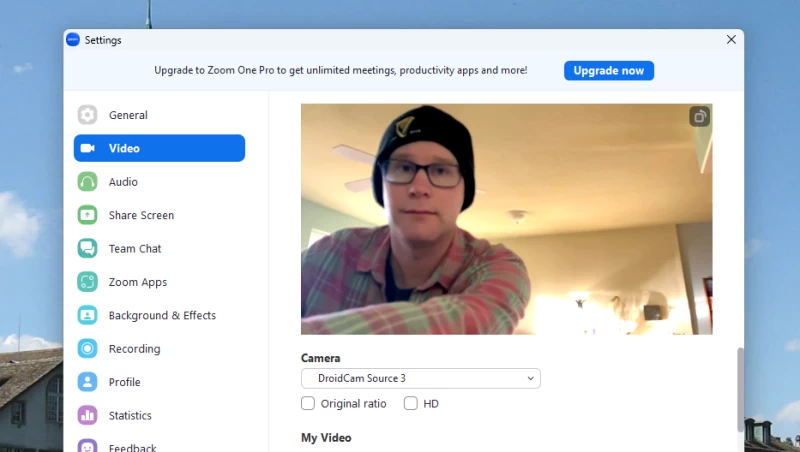 我用 Zoom、Google Meet 和 Jitsi 測試過,效果都很好。免費版只提供標清畫質。您可以升級到專業版,享受高清畫質以及一些實用功能,例如亮度調整和自動對焦。付費升級費用為每年 4.99 美元(訂閱)或一次性支付 14.99 美元。您也可以觀看廣告,免費獲得一小時高清畫質。