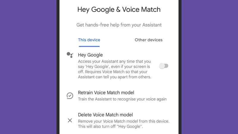 - 在「此裝置」下,關閉「 Hey Google」開關。