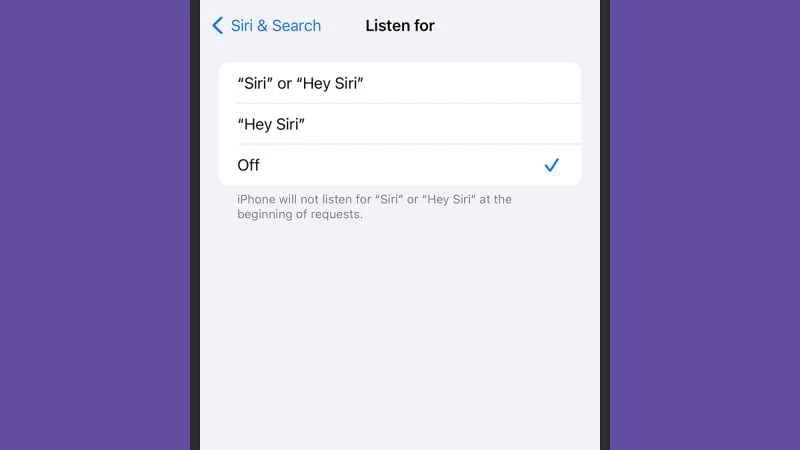 - 選擇“聆聽 Siri”或“嘿 Siri”,然後停用該功能。