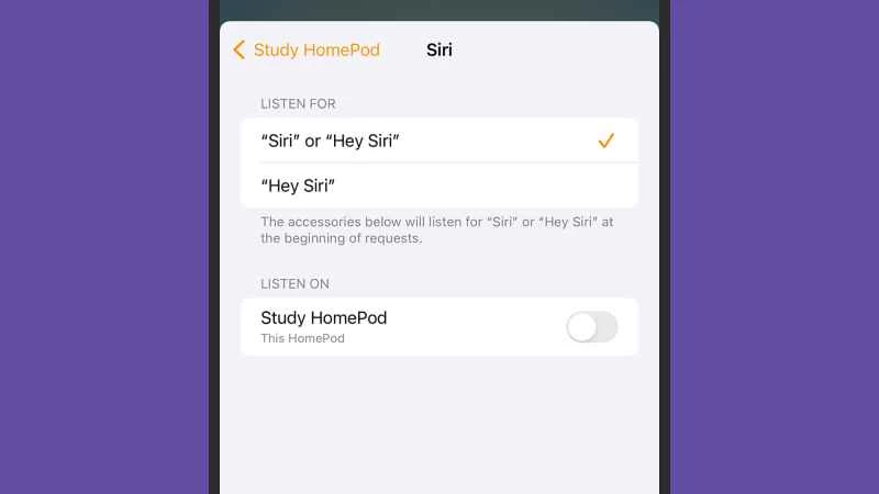 在 Apple HomePod 和 Apple HomePod Mini 上,您只需說“嘿 Siri,停止收聽”,然後確認更改。或者,您也可以使用安裝在 iPhone 上的「家庭」App。