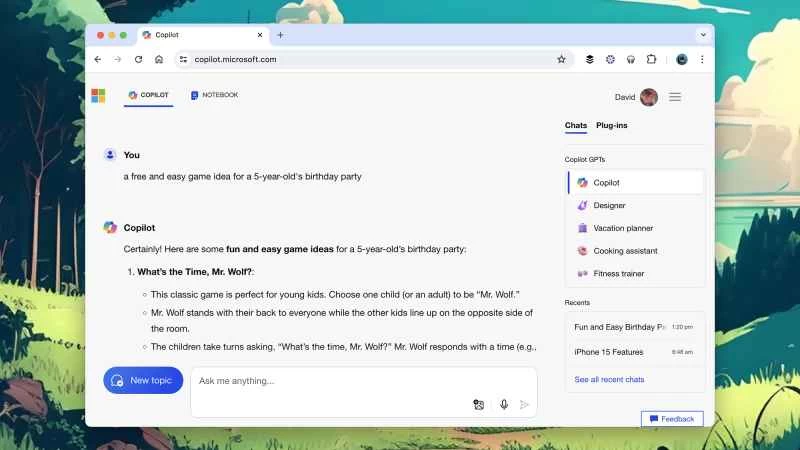 至於我們的挑戰,Copilot 建議我們為 5 歲的孩子開發一款名為《狼先生,現在幾點了? 》的遊戲,以及一款適用於智慧型手機的虛擬室內設計擴增實境應用程式——儘管它沒有為我們命名,而是告訴我們「發揮創意」來命名。