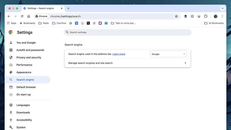 如果您使用的是其他瀏覽器,應該也有類似的設定可以更改預設搜尋引擎。輸入「https://www.google.com/search?q=%s&udm=14」作為搜尋字串,即可立即在網頁標籤頁中查看搜尋結果。