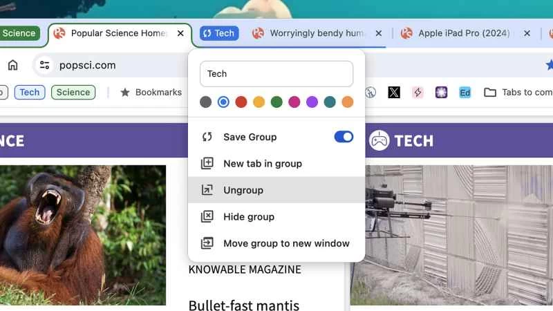 這項功能叫做標籤頁分組,它的工作原理正如其名:您可以將多個標籤頁分組到特定的數字「桶」中,以便更輕鬆地管理它們。然後,您可以批量移動、打開或關閉這些標籤頁,這樣就無需打開一大堆您實際上不使用的標籤頁了。