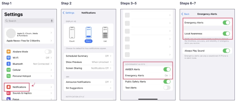 - 據蘋果公司稱, 「本地感知」選項可提高美國境內緊急警報的及時性和準確性。切換開關即可啟用或停用此功能。
