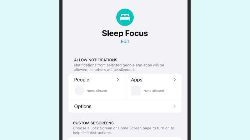 這就引出了睡眠專注模式:一種專為夜間設計的特殊模式,並附帶一些額外功能:您不僅可以設定誰可以聯繫您,誰不可以,還可以使用它來建立更健康、更規律的睡眠模式。