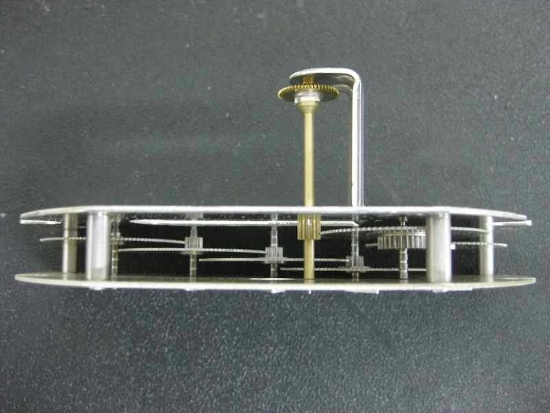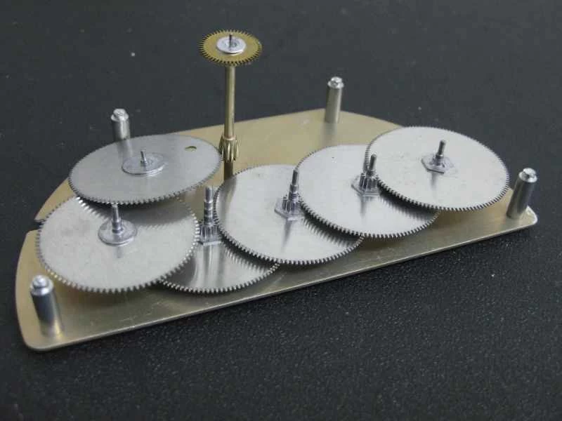 5. 此輪子的旋轉及其支撐軸帶動齒輪系統運轉。齒輪及其連接的指示輪構成一個累加器;由於瞬時功率不斷累加到計數中,因此總功率消耗會被記錄下來。此齒輪系統以10為單位遞增,從而形成一個多位數顯示,其工作原理與汽車里程表類似。在本儀表中,這些齒輪計數器會儲存並顯示五個有效數字。