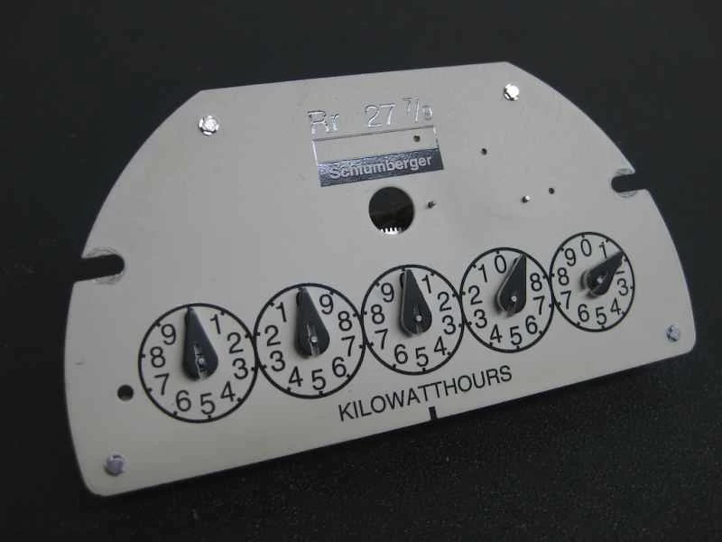 機械式電錶利用輪盤積分器[1]的原理來計算家庭或企業的用電量。回想一下基本的電學概念-歐姆定律,它告訴我們 P = VI;也就是說,在任意時刻流過電路元件(例如房屋的整個用電負載)的瞬時功率 (P) 等於該元件兩端的電壓 (V) 乘以流過該元件的電流 (I) [2]。現在,如果我們用某種方式表示這個功率值,然後將一段時間內每個瞬時功率值相加,就能得到該時間段內的用電量。這就是我們所說的能量,而能量消耗正是電錶所測量的。