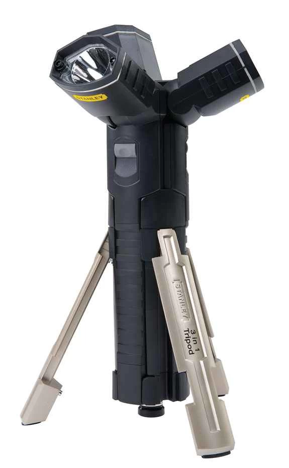 以工具箱裡的必備工具-手電筒為例。史丹利的這款三合一LED手電筒除了開關之外,還提供了三種使用方式。您可以像普通手電筒一樣手持使用,也可以將其拆分成三個獨立的手電筒桿,或者將這三個手電筒桿折疊成一個直立的三腳架。每個手電筒桿都配有120度多向旋轉燈頭,可以精準地將光線投射到您需要的地方。