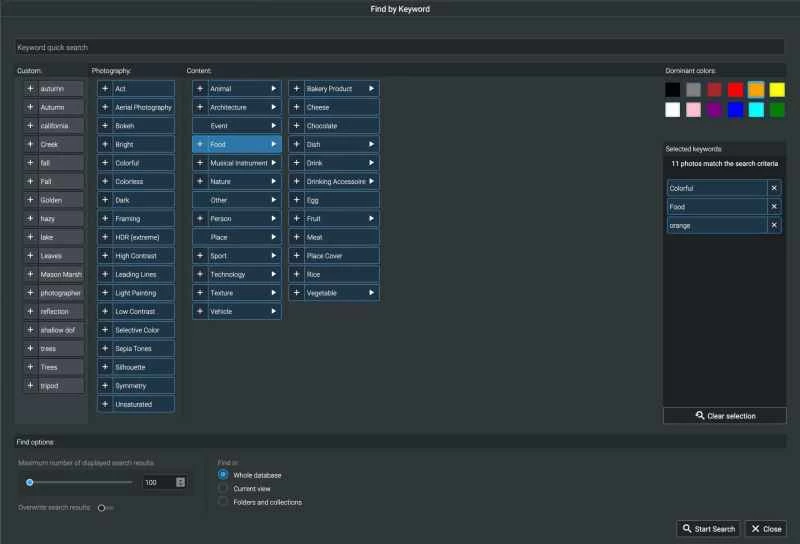 使用關鍵字和其他元資料的另一面是,事情很容易變得複雜。大多數應用程式都力求簡化搜尋操作以吸引更多用戶,但Excire Foto支援多種照片搜尋方式。