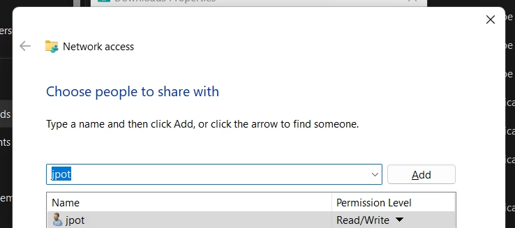 現在是時候共享資料夾了。在 Windows 系統中,您可以右鍵點擊 Windows 資源管理器中的資料夾,然後按一下「屬性」來開始共用。按一下“共用”選項卡,然後按一下“共用”按鈕。新增您剛剛建立的帳戶,然後授予其所需的權限。