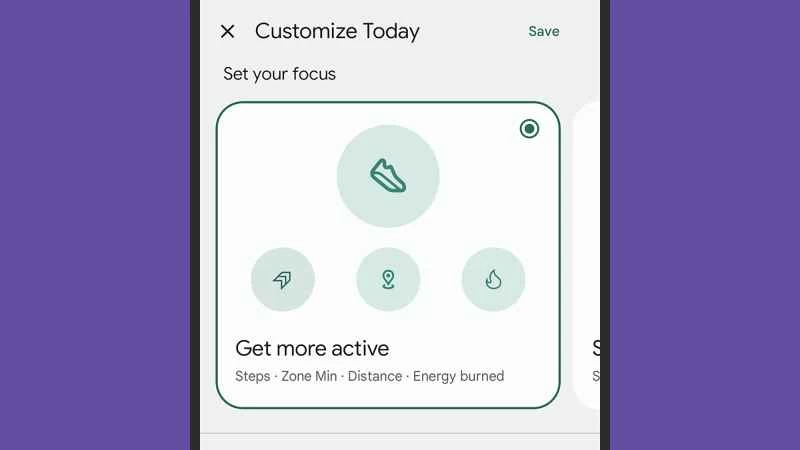 如果「今日」標籤頁沒有突出顯示您最感興趣的目標,您可以變更其外觀。點擊右上角的筆形圖標,然後左右滑動即可瀏覽各種佈局——您還可以自訂佈局,精確選擇螢幕頂部顯示的目標。在設定頁面下方,您也可以顯示或隱藏特定指標。點擊“儲存”以確認您的選擇。