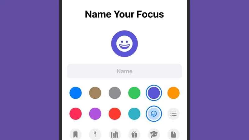 如果您需要其他模式,不必局限於 iOS 提供的「專注」模式。從「設定」中選擇「專注」 ,然後點擊右上角的「+」 (加號)按鈕:選擇螢幕上的建議之一,或選擇「自訂」從頭開始創建,這將進入一個頁面,您可以在其中為該模式選擇名稱、圖示和顏色。