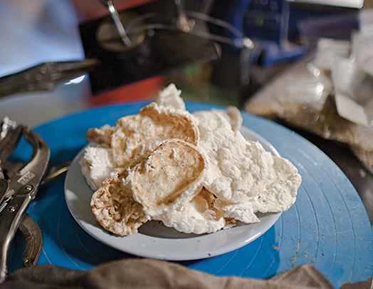 過程的方程式大致如下:150 psi(壓力)和 480ºF(溫度)x 12 秒(時間)+ 突然釋放回大氣 = 1 個夾具蛋糕。